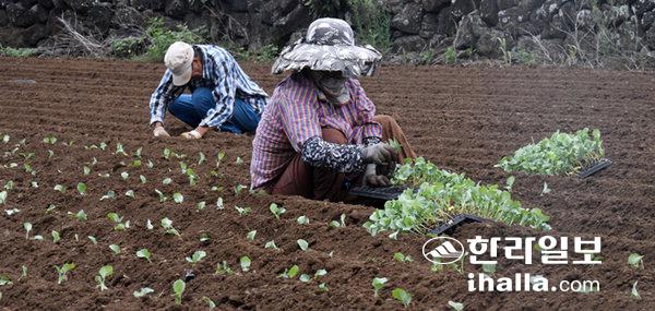 16일 제주시 한경면 고산리 한 밭에서 농민들이 브로콜리 파종작업으로 분주한 시간을 보내고 있다. 이상국기자