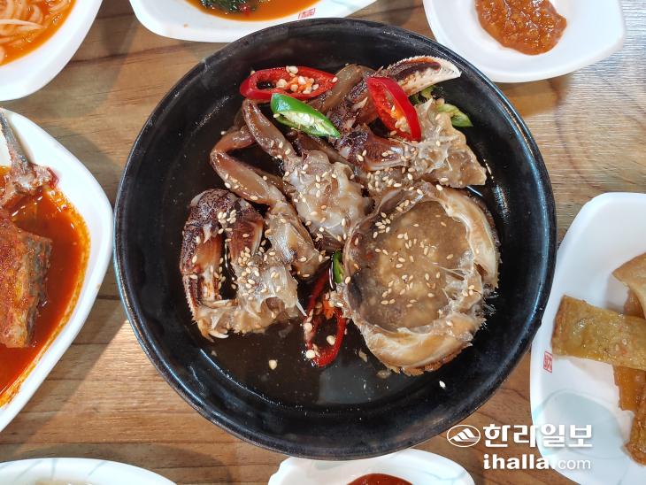 뚝배기에 뜨겁게 끓여져 나오는 고등어해장국은 첫인상과 달리 낯설지 않다. 가시 하나 없어 먹기도 편하다. 해장국 하나만 시켜도 간장게장에 다양한 반찬이 따라나온다. 푸짐한 한 상이다.