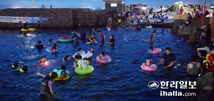 제주시 삼양동 용천수를 찾은 시민들이 열대야를 피해 물놀이를 하며 더위를 식히고 있다. 한라일보DB
