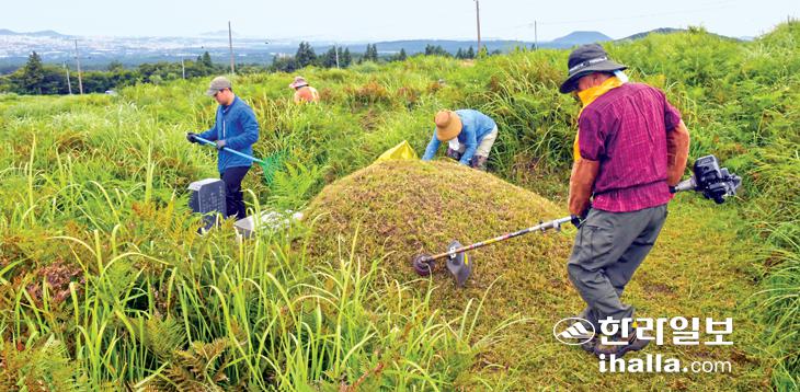 시나브로 추석이 다가오고 있다. 무더위가 기승을 부린 지난 20일 제주시공설공동묘지를 찾은 시민들이 조상들의 묘소를 벌초하고 있다. 이상국기자