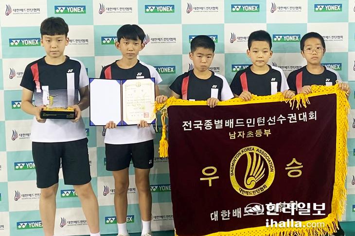 동광초등학교(교장 김지혜)는 지난 16일부터 충북 충주시 호암체육관에서 열린 2022 전국종별배드민턴선수권대회에 출전해 6학년 강준우, 김민준, 김유준, 고주혁, 서현규 5명으로 구성된 동광초 배드민턴부 A조 단체팀이 남자초등부 단체전에서 우승을 차지했다.