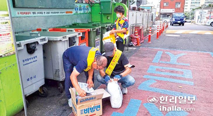 제주시 이도1동과 이도1동민속보존회(회장 송봉연)는 23일 관내 클린하우스에서 쓰레기 무단 투기 단속을 실시하고 생활 쓰레기 분리 배출 등을 적극 홍보했다.