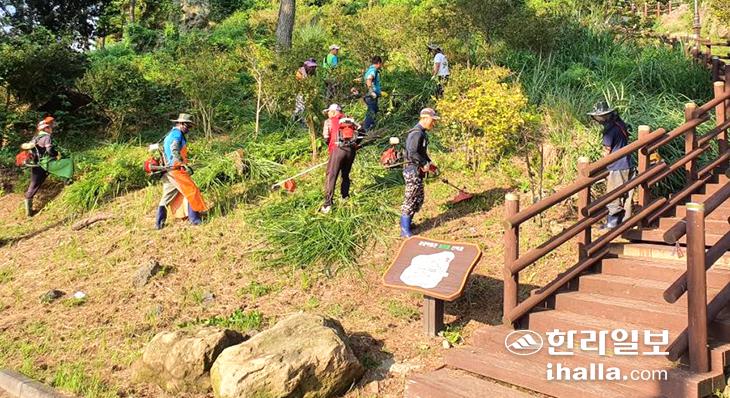 서귀포시산림조합청년회(회장 김선봉)는 23일 청년회원과 조합 직원 등 30여 명이 참석한 가운데 신효동 월라봉 산책로에서 환경정화 활동을 실시했다.
