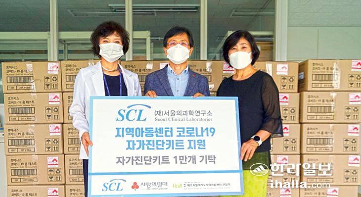 SCL(재단법인 서울의과학연구소)은 지난 23일 제주사회복지공동모금회(회장 강지언)와 제주도지역아동센터연합회(회장 허정례)에 코로나19 자가진단키트 1만개를 기부했다.