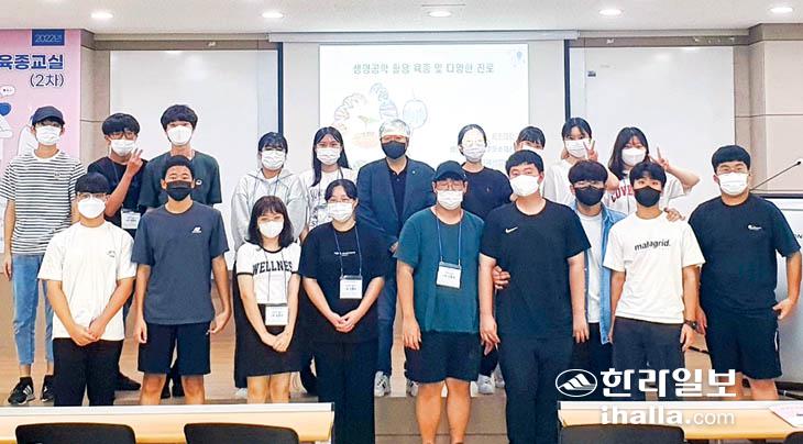 제주대학교 아열대원예산업연구소(소장 이효연)와 생물자원컴퓨팅융합연구센터(센터장 김인중), 지식재산교육센터(〃)는 지난 20일 제주대에서 도내 고교생들을 대상으로 '2022년 생명공학육종교실' 기초반 2차 교육을 실시했다. 이번 교실은 고교생들에게 생명공학 분야에 대한 관심도 및 이해도를 높이고 대학 진학 시 전공 선택과 진로에 대한 정보를 제공하기 위해 마련됐다.