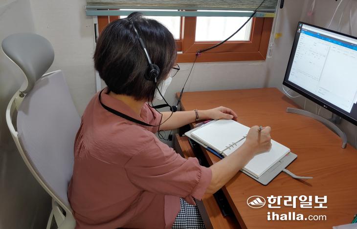 1366제주센터의 한 상담원이 상담실에서 전화 상담을 하고 있다. 센터가 운영을 시작한 2001년 8월부터 올해 6월까지 14만 3976건의 상담이 이뤄졌다. 김지은기자