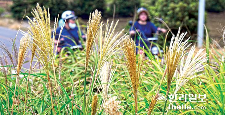 어느새 가을이다. 한낮의 뙤약볕은 기세가 한 풀 꺾였고, 아침 저녁으로 불어오는 바람에는 선선한 기운이 가득하다. 전형적인 초가을 날씨를 보인 29일 제주시 한경면 한장동 도로변에 억새가 피어 시나브로 다가온 가을을 실감하게 한다. 강희만기자