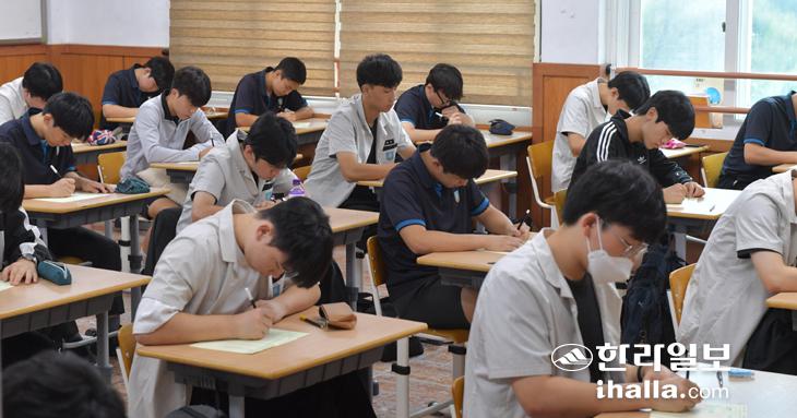 11월 17일 시행되는 2023학년도 대학수학능력시험을 앞두고 31일 오전 제주제일고등학교에서 고3 수험생들이 수능 마지막 모의고사를 치르고 있다. 이상국기자