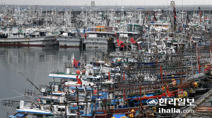 태풍'힌남노'가 제주도를 향해 북상하는 가운데 4일 제주시 한림읍 한림항에 어선들이 대피해 있다. 강희만기자