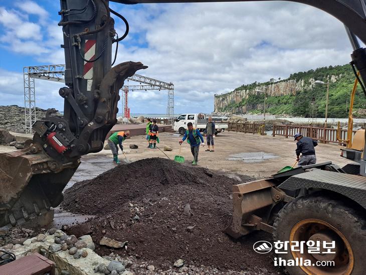 대평포구에서 패해 복구작업 중인 안덕자율방재단.