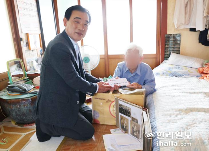 대한적십자사제주특별자치도지사(회장 오홍식)는 지난 8일 추석을 앞두고 서귀포시 강정동에 거주하는 이산가족에 위문품을 전달했다. 이날 오홍식 회장은 올해로 만 100세가 될 때까지 상봉 경험이 없는 대상자의 자택을 직접 찾아 추석 선물을 전달했다.