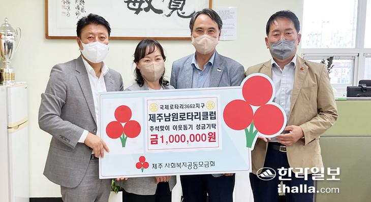 국제로타리3662지구 제주남원로타리클럽(회장 고일학)은 최근 추석 명절을 맞아 지역 내 어려운 이웃을 돕는데 사용해달라며 성금 100만원을 남원읍에 기탁했다.