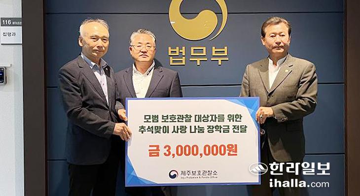 법무부 제주보호관찰소(소장 유정호)는 지난 7일 모범 보호관찰 대상자 6명에게 각 50만원씩 총 300만원의 장학금을 전달했다. 이번 장학금은 제주보호관찰소협의회, 김종길 보호관찰위원의 후원으로 마련됐다.