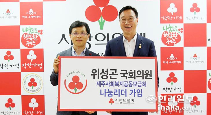 위성곤 국회의원(더불어민주당·서귀포시)은 지난 8일 제주사회복지공동모금회(회장 강지언)를 방문해 '제주 나눔리더'에 가입했다.