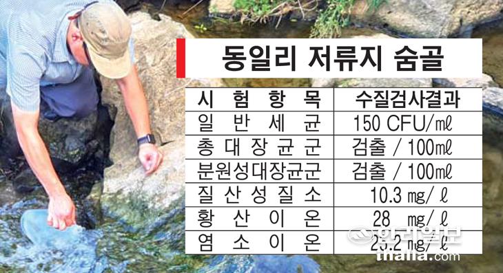 동일리 저류지 숨골 지표수, 질산성 질소 15.1㎎/L 기준치 초과