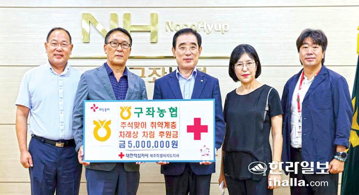 구좌농협(조합장 윤민)은 지난 8일 구좌농협 대회의실에서 대한적십자사제주지사(회장 오홍식)에 추석맞이 취약계층 차례상 장보기 지원 후원금 500만원을 전달했다. 이날 전달된 후원금은 소외된 이웃들이 행복한 추석을 보낼 수 있도록 마련됐다.