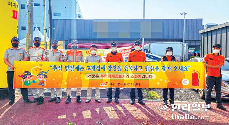 제주소방서 화북119센터(센터장 강진)와 화북남성의용소방대(남성대장 이치우)는 추석 연휴 기간 다중 밀집 장소에서 '주택용 소방시설 선물하기' 캠페인을 실시했다. 이번 캠페인은 추석 명절을 앞두고 고향 집의 안전을 위해 추진됐다.