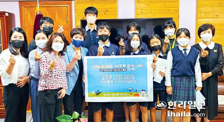 일팔동사모(대표 김성희)는 지난 13일 제주동중학교에 학생 장학금과 운동부 격려금을 기탁했다. 이날 일팔동사모는 학생 장학금 100만원, 엘리트 농구부 100만원, 엘리트 사이클부 100만원 등 총 300만원을 전달했다.