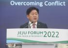 15일 제주포럼 개회식에서 기조연설하는 오영훈 제주지사.