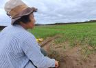 제11호 태풍 '힌남노'가 제주를 빠져나간 직후인 지난 6일 오전 제주시 구좌읍 일대 당근밭 상황. 강풍을 타고 당근밭을 덮친 바닷바람으로 당근의 어린 잎이 거무스름하게 변하고 있다.