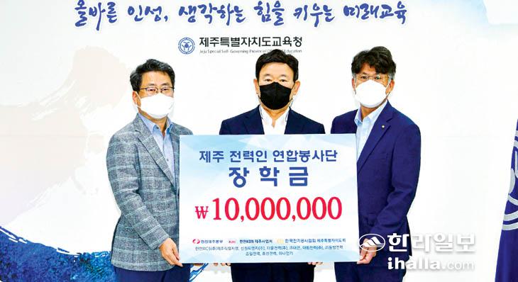 한국전력공사 제주본부(본부장 김세경)와 한국전기공사협회 제주특별자치도회(회장 양영우)의 회원사로 구성된 제주전력인연합봉사단은 지난 14일 제주도교육청을 통해 도내 고등학생 20명에게 장학금을 전달했다.