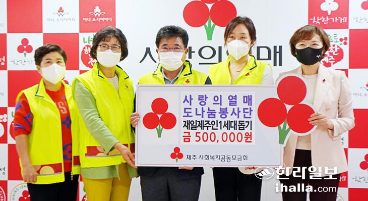 사랑의열매 도나눔봉사단(단장 김동오)은 지난 14일 제주사회복지공동모금회(회장 강지언)를 방문해 재일제주인 1세대를 위해 사용해달라며 성금 50만원을 기탁했다.