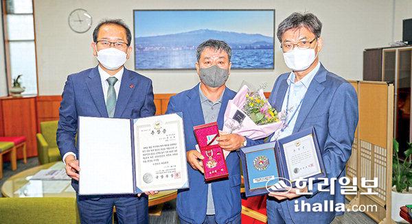 강병삼 제주시장은 15일 6·25 참전유공자인 고(故) 홍금표 참전용사 유족을 찾아 화랑무공훈장을 전수했다.