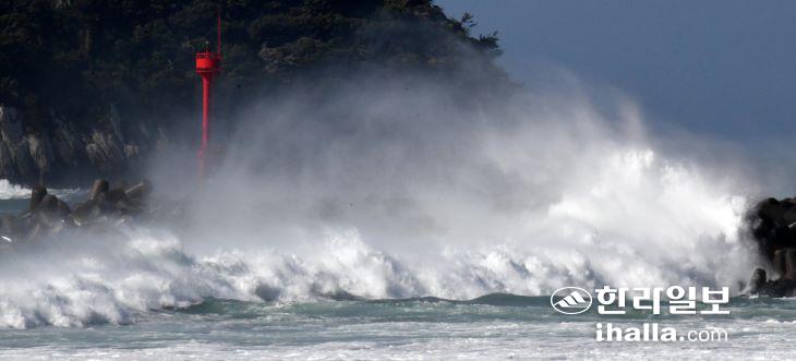 18일 제14호 태풍 '난마돌'의 영향으로 서귀포시 보목동에 강한 파도가 밀려들고 있다. 강희만기자