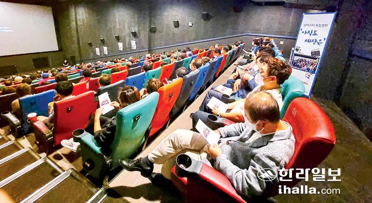 동제주종합사회복지관(관장 김지선)은 지난 15일 롯데시네마 제주아라 4관에서 실버스타 독립영화 '아직도 세상은' 시사회를 개최했다. 이 작품은 지난해 (주)오리온재단의 후원과 제주사회복지공동모금회의 지원으로 제작됐다. 이후 공개오디션을 통해 선발된 시니어 어르신 배우를 대상으로 전문적인 연기연습을 마쳤으며, 올해 7월 첫 촬영을 시작해 영화를 완성했다.