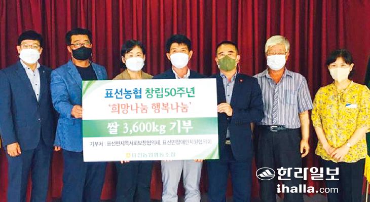 표선농협(조합장 고철민)은 최근 창립 50주년을 기념하며 표선면지역사회보장협의체(공동위원장 조성연·김명호)에 지역 내 경제적으로 어려움을 겪고 있는 이웃돕기를 위한 쌀 3600㎏을 기탁했다.