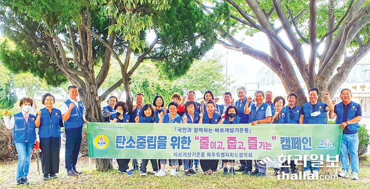 바르게살기운동제주특별자치도협의회(회장 좌중언)는 최근 공설운동장 일대에서 탄소중립 실현을 위한 줄·줍·즐(줄이고 줍고 즐기자) 캠페인을 전개해 공설운동장 일대 공원 환경정화 활동을 펼쳤다.
