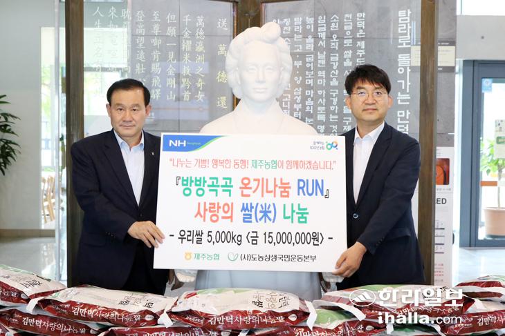 농협제주지역본부(본부장 강승표)는 21일 김만덕기념관(관장 강영진)에 사랑의 쌀 5㎏ 1000포대(1500만원 상당)를 전달했다.