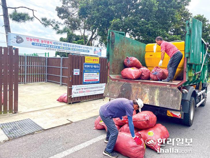 서귀포시 표선면은 지난 20일 세화1리 재활용도움센터에서 영농폐기물 집중 수거의 날을 운영하고 타이벡, 한라봉끈, 천막 등 유·무상품목 28종류를 배출 확인해 중간 집하장으로 운반했다.