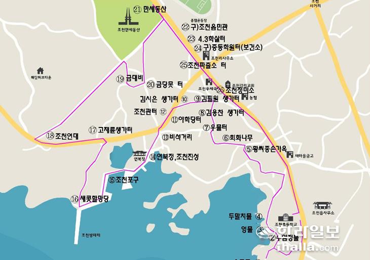 조천초 총동창회의 '우리 마을 역사·문화 유적 탐방' 지도.