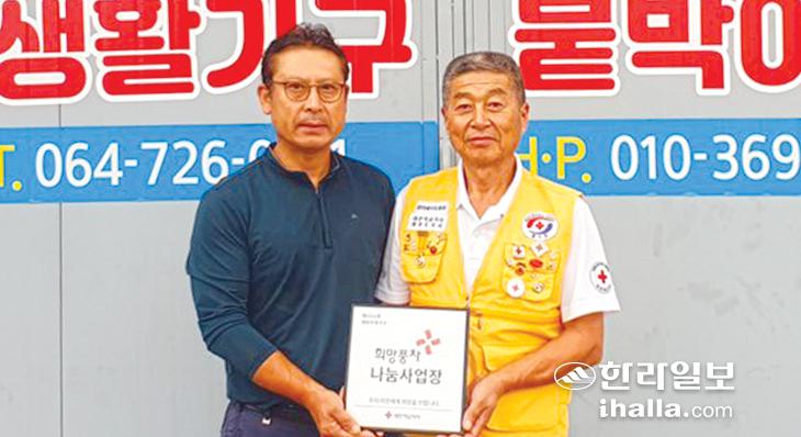 대한적십자사제주특별자치도지사(회장 오홍식)는 최근 제주시 도련2동 소재 대원부엌가구(대표 문경언)에서 적십자 희망풍차 나눔사업장 명패 전달식을 가졌다.
