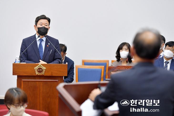 26일 오전 표선 지역 IB교육 운영 상황을 중심으로 한 강연호 의원의 교육행정 질문에 김광수 교육감이 답변하고 있다. 제주도의회