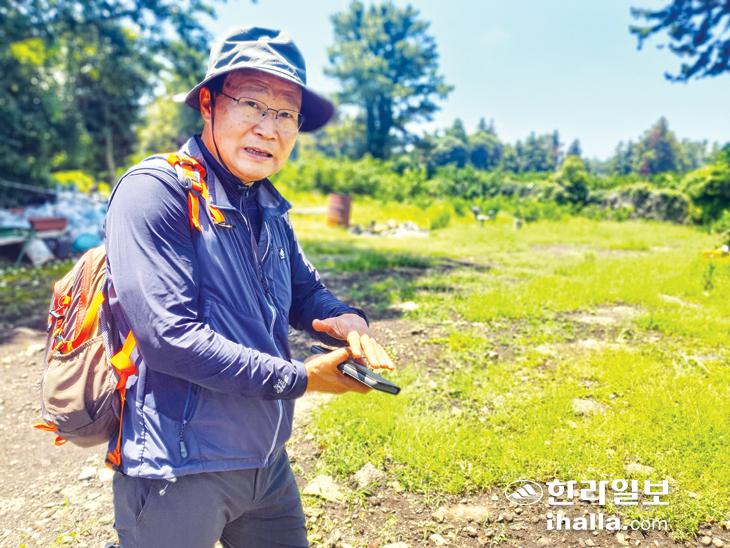 고기원 곶자왈공유화재단 이사 및 연구소장이 이곳 숨골에 대해 설명해 주고 있다.