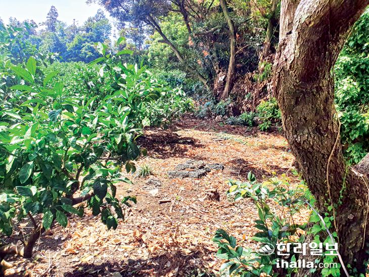 남원 도로밑에 있는 숨골 인근 과수원 모습.