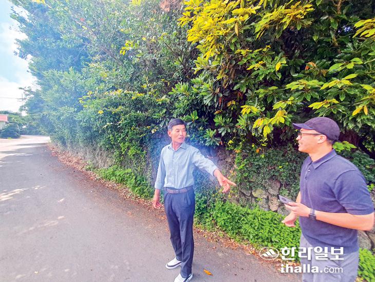 도로밑에 있는 숨골의 위치를 지역주민이 알려주고 있다.