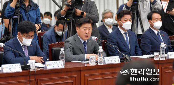 오영훈 제주도지사는 이날 인사말을 통해 "지난 7월 취임 직후 모든 예산정책협의회에서 최우선 안건으로 제시한 '교래정수장 현대화사업'을 비롯한 상·하수도 관련 사업을 꾸준히 요구해 왔다"며 "반드시 내년 국비 예산에 반영돼야 한다"고 강조했다.