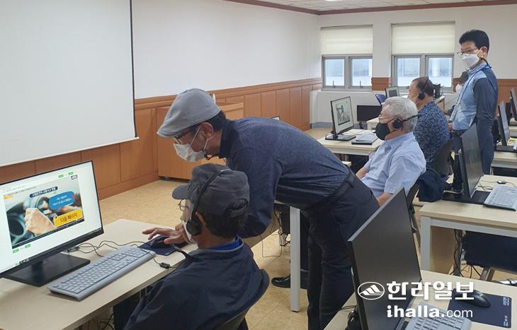 제주시 정보화교육장에서 면허를 갱신하려는 만 75세 이상 고령 운전자를 대상으로 온라인 교통안전교육이 이뤄지고 있다. 사진=제주시