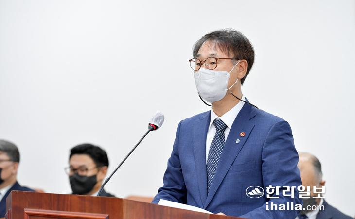 4일 열린 인사청문에서 답변하는 양덕순 제주연구원장 예정자.