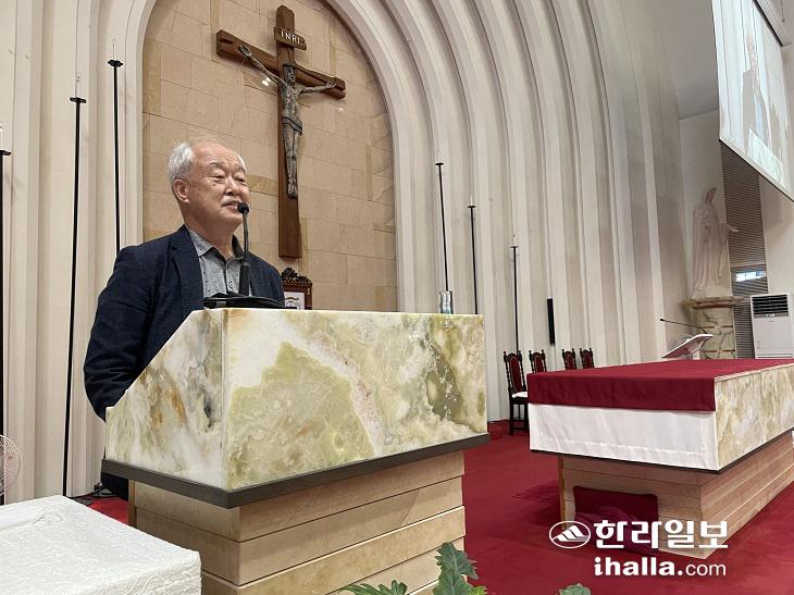 기조강연을 하고 있는 조성윤 제주대 사회학교 명예교수. 송은범기자
