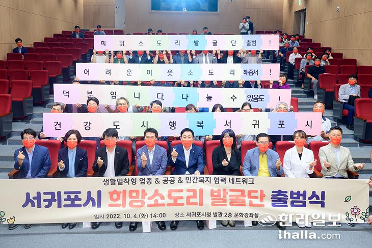 서귀포시는 지난 4일 시청 별관 문화강좌실에서 지역사회의 복지 사각지대 발굴을 위한 '희망소도리 발굴단' 출범식을 개최했다. 발굴단은 편의점, 미용실, 약국 등 업체와 복지기관 등 52개소가 참여한다.