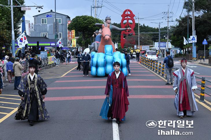 기존 운영돼 왔던 가장퍼레이드와 퍼레이드 퍼포먼스를 통칭한 탐라퍼레이드에는 도내 읍·면·동과 일반 참가팀, 도민을 비롯 일본 3개 도시, 몽골, 중국, 필리핀 등 해외교류단체들이 참여해 풍성한 볼거리를 선물했다.