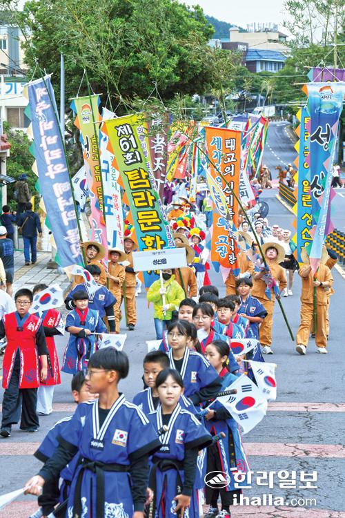 제61회 탐라문화제가 10일 폐막했다. 지난 8일 원도심 일대에서는 '탐라문화제의 꽃'인 거리 퍼레이드가 펼쳐져 축제 분위기를 한껏 고조시켰다. 이상국기자