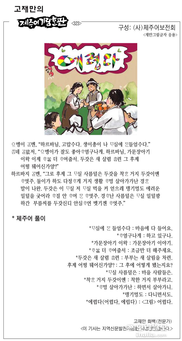 [고재만의 제주어기림혼판] 제주어 풀이(323)