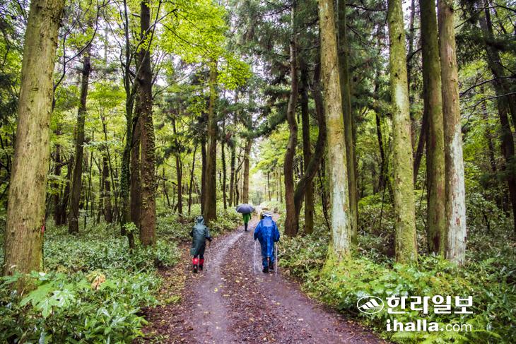 [한라일보] 비 오는 날의 숲속 풍광은 수채화 도화지 위에 물감처럼 흘러내린다. 그래서 비 오는 숲은 쓸쓸하다. 가을 숲이면 더욱 그렇다. 가을비가 내리는 숲길을 따라 걷는다. 우비를 입었지만 바람이 불지 않아 걷기에 불편은 없다. 촉촉이 내리는 빗방울은 내 머리 위에서 맴도는 말을 데리고 머리 뒤로 떨어진다. 그저 말없이 묵묵히 걸어간다. 평소 사각대던 조릿대도 말이 없다. 말을 하는 순간 도화지는 다시 하얗게 변할 것 같다. 옅게 깔린 안개 너머로 앞에 가는 파란 우비가 사라졌다 나타나길 반복한다. 에코투어 하는 날은 비가 온다는 일기예보가 틀렸으면 좋겠다. 하지만 일기예보가 틀리길 바라며 들어선 숲길은 또 그렇게 다른 모습으로 다가왔다. 한여름 소낙비 지나듯 스쳐 지나는 풍경이 아닌 촉촉한 가을비와 함께 흘러내리는 숲의 풍광이 좋다. 비는 오더라도 단풍을 준비하는 숲길을 따라 걸으면 볼 수 있는 쓸쓸한 풍광이 또 다른 매력이다.