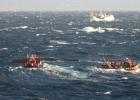 18일 2006만진호가 전복된 사고 해역 주변으로 해경 등의 수색 작전이 진행되고 있다. 서귀포해양경찰서 제공