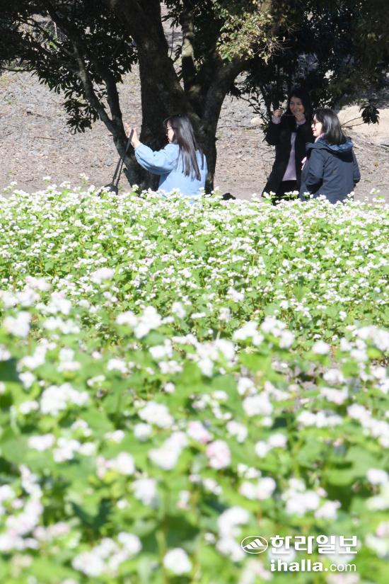 2022 와흘 가을 메밀문화제가 18일 제주시 조천읍 메밀 밭에서 열린 가운데 관광객들이 기념사진을 찍고있다. 이상국기자